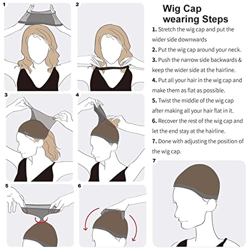 Cuffia elastica: l'elastico largo è elastico e si adatta alla testa senza essere troppo stretto. È adatto per teste di diverse dimensioni e lunghezze. L'elastico antiscivolo mantiene i capelli in posizione e assicura una perfetta aderenza alla parrucca.