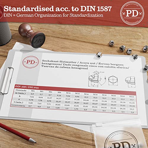 PD® Dadi cappuccio M12 (DIN 1587) | Dado a cappuccio in acciaio inox A2 V2A | Dadi calotta di protezione in forma elevata per viti, barre filettate e bulloni filettati | 5 pezzi