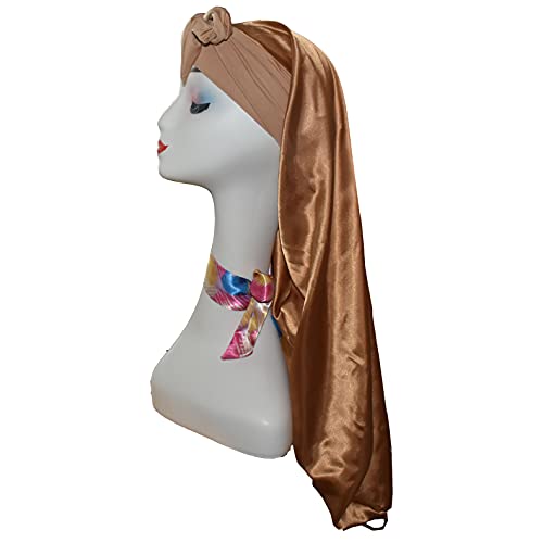 Cappuccio lungo in raso per capelli ricci, trecce, dreadlocks, capelli lunghi con fascia elastica morbida per donna oro
