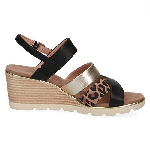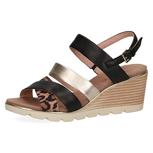 Caprice 28708 Black, Leopard and Gold Combi Leather Womens Wedge Strapy Sandals 40