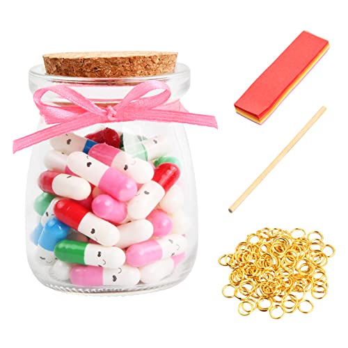 【Pacchetto】 Riceverai 100 pezzi di mini capsule, alcuni mini anelli di metallo, note, 1 nastro, 1 bottiglia di vetro, che sono sufficienti per soddisfare le tue esigenze quotidiane.