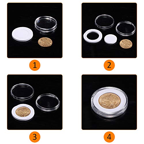Grande capacità La confezione da 7,27 * 4,72 pollici (L * W) può contenere fino a un massimo di 100 pezzi, ideale per proteggere le tue capsule, tenendole ordinate e organizzate. Capsule per monete da 100 pezzi all'interno della scatola di immagazzinaggio delle monete possono bastare per le tue grandi esigenze di raccolta.