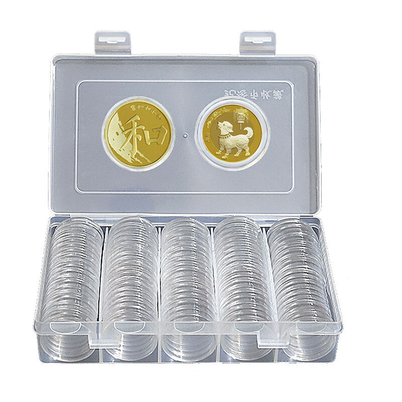 29 mm x 5 mm/1,14" x 0,20" (diametro esterno x altezza) Quantità: 1 set (1 scatola intera, 100 capsule per monete rotonde) Il pacchetto include: (senza pacchetto di vendita al dettaglio) 1 set x organizer per monete (le monete non sono incluse.)