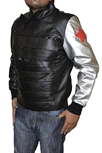 Captain America Winter Soldier Bucky Barnes Black & Silver Faux Leather Jacket-Best HALLOWEEN costume (XS)