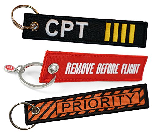 Captain S Bundle, 3 X portachiavi ciondolo portachiavi anello incluso, Remove before flight, Priority & CPT (Captain)
