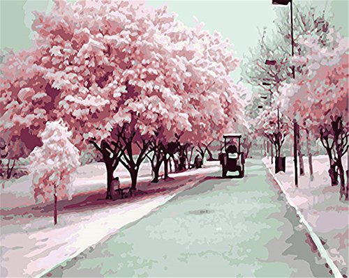 CaptainCrafts - Kit per dipingere con i Numeri, 16 x 20 cm, per Adulti e Bambini, Creative DIY Digitale Dipinto a Olio per Bambini - Kyoto Sakura Primavera, Strada Romantica