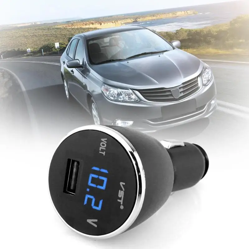 2 in 1 Car-Mounted Voltage Display Car Charger for 12V 24V Battery Charger Voltmeter With USB Charger Blue LED Light Display