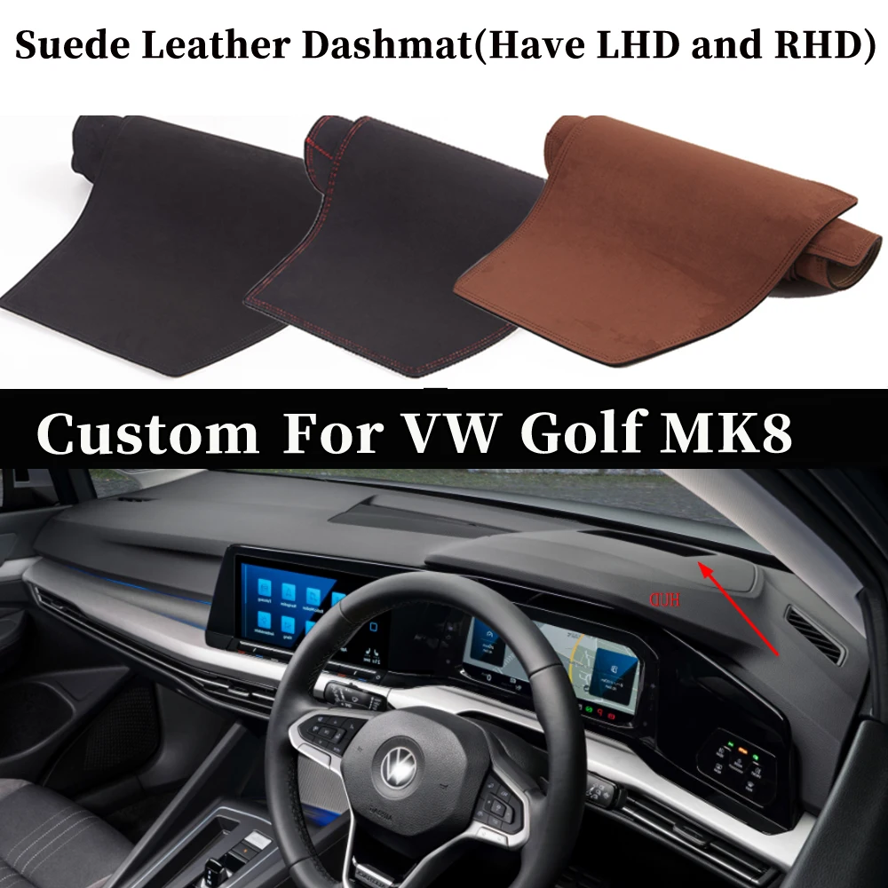 Car-styling Suede Leather Dashmat Dashboard Cover Pad Dash Carpet Accessories Custom For VW Golf MK8 E-GLOF MQB 2020 2021 RHD