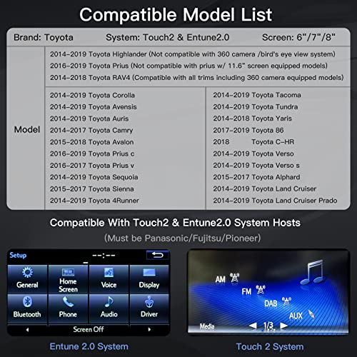 Nota: Adatto solo per Toyota 2014-2019 con Touch2 & Entune2.0. (Si prega di notare i modelli compatibili dei veicoli nelle immagini)