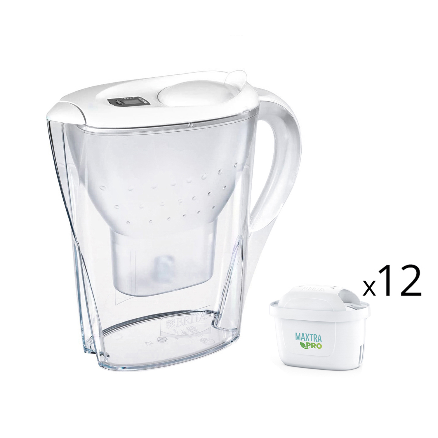 Marella di Brita è la caraffa affidabile, funzionale e conveniente per portare in tavola acqua filtrata, buona da bere. 12 mesi di acqua filtrata: grazie al set di 12 filtri inclusi, hai 12 mesi di acqua fresca, pura e filtrata per la tua famiglia! Ogni filtro = fino a 150 L;