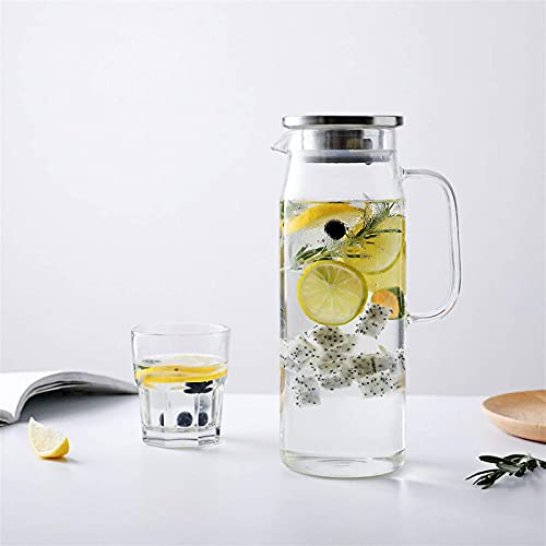 Design in vetro borosilicato duro: la brocca dell'acqua è realizzata in vetro borosilicato, brocca, coperchio in acciaio inossidabile. Grande capacità di 1500 ml (5 ~ 6 bicchieri d'acqua) e fondamentalmente soddisfa la domanda quotidiana di tutta la tua famiglia.
