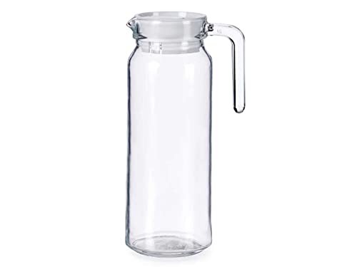 MGE - Caraffa di Vetro con Cappuccio - Brocca in Vetro per Acqua, Tè, Succo di Frutta - Bottiglia Trasparente - Design 1