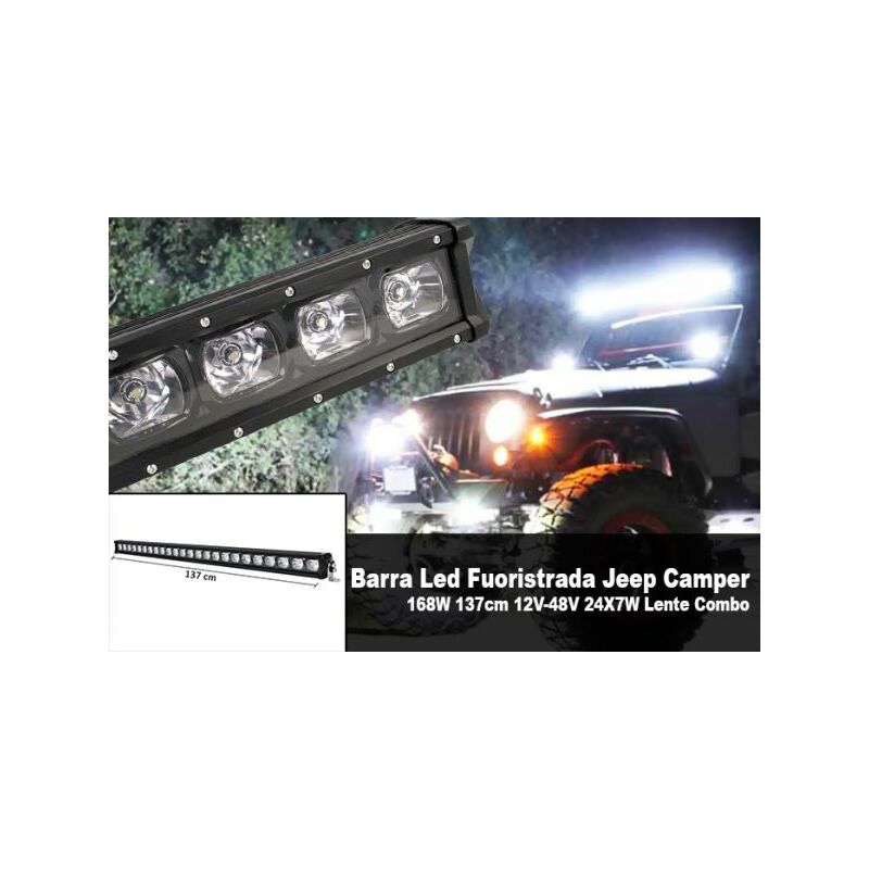 Una Barra Led In Alluminio,Modello Con Singola Fila Led,Faro Aggiuntivo X Fuoristrada Jeep Camper Camion,24 Led Smd Cree XML da 7W,Lente Combo(12 Led Centrale Spot 20°+12 Led Laterale Flood 45°), Impermeabile IP67,Alta Luminosità (24960 Lumen), Luce Bianco Ghiaccio (circa 6500K),Carcassa Di colore Nero Una Barra Led In Alluminio -Modello Con Singola Fila Led- - Faro Aggiuntivo X Fuoristrada Jeep Camper Camion - 24 Led Smd Cree XML da 7W- -Lente Combo(12 Led Centrale Spot 20°+12 Led Laterale Flood 45°)- - Impermeabile IP67 - Alta Luminosità (24960 Lumen) - Luce Bianco Ghiaccio (circa 6500K) - Carcassa Di colore Nero - INFORMAZIONI UTILI: Voltaggio: DC 12V-48V Angolo di Illuminazione: 12 Led Centrale Spot 20° + 12 Led Laterale Flood 45° Numero di Led:24 Led CREE da 7W Temperatura Lavoro: -40℃~+85℃ Colorazione: Luce Bianco Ghiaccio Circa 6500K Potenza di Illuminazione: circa 24960 Lum Misura:Lunghezza 1370mm,Larghezza 80mm,Profondità 76mm Peso:Circa 6500g Materiali: Acciaio di