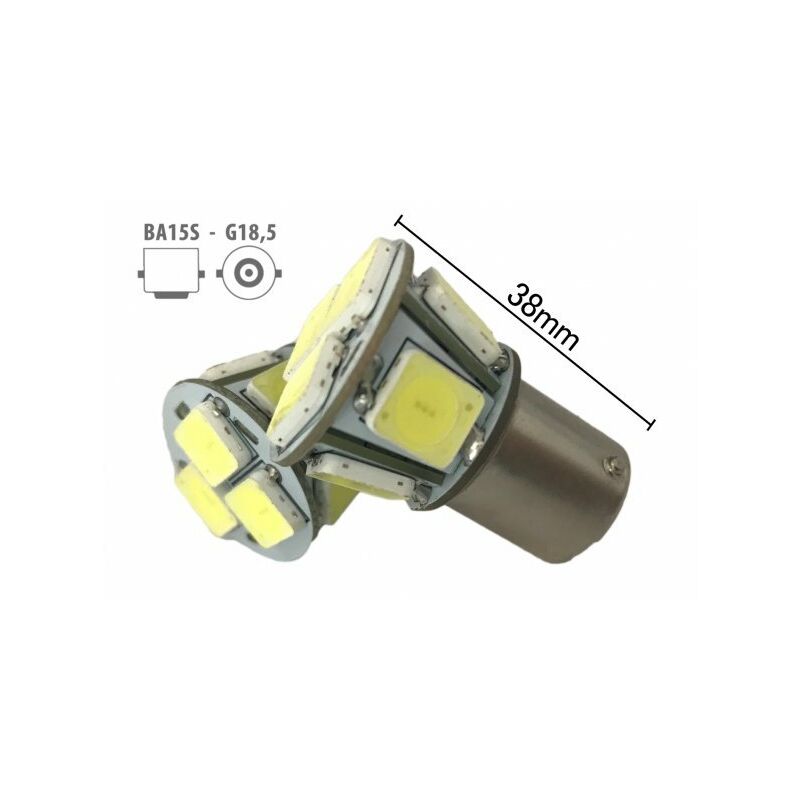 Coppia 2 Lampade Led BA15S 1156 P21W Con 8 Smd 9080 Bianco Freddo 6000K 12V 4W Attacco:BA15S 1156 Voltaggio: 12V Potenza: 4W Numero Led:8 LED SMD 9080 Colore:Bianco Freddo 6000K Misura:Lunghezza 38mm,Diametro 24mm Confezione: 2 Pezzi
