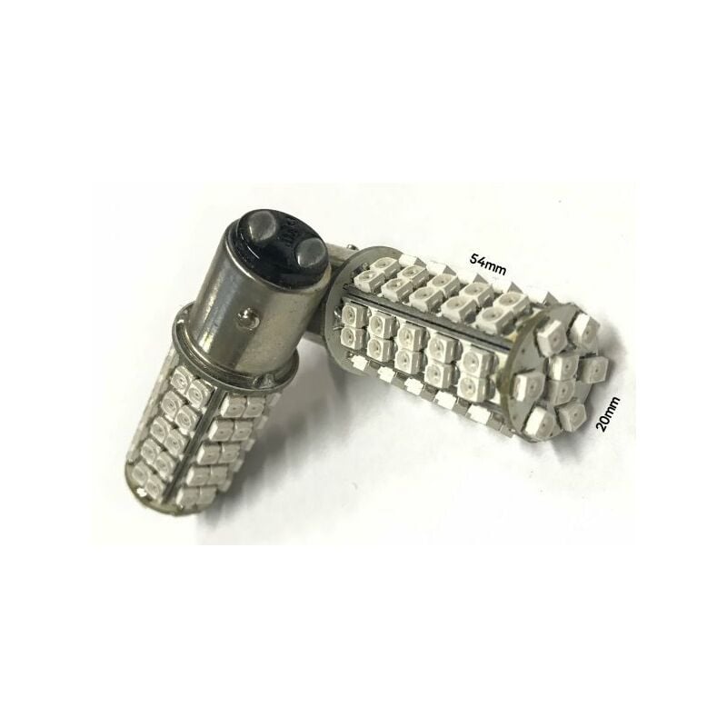 Coppia 2 Lampade Led BAY15D 1157 P21/5W Con 68 Smd 3528 Colore Giallo Arancione 12V 2W Attacco:BAY15D 1157 Voltaggio: 12V Potenza: 2W Numero Led:68 SMD 3528 Colore:GIALLO ARANCIONE Misura:Lunghezza 54mm,Diametro 20mm Confezione: 2 Pezzi