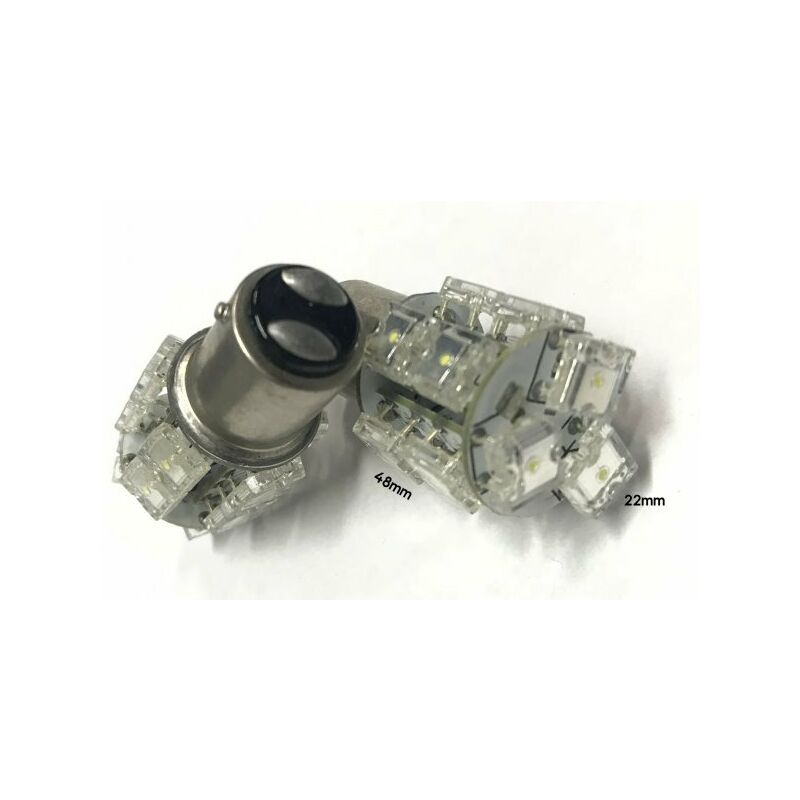 Coppia 2 Lampade Led BAY15D 1157 P21/5W Con 13 F5 Quadrato Colore Verde 12V 2W Attacco:BAY15D 1157 Voltaggio: 12V Potenza: 2W Numero Led:13 LED QUADRATO Colore:VERDE Misura:Lunghezza 48mm,Diametro 22mm Confezione: 2 Pezzi