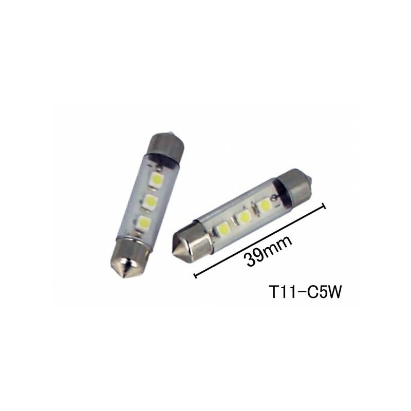 Coppia 2 Lampade Led T11 C5W Siluro 39mm Con 3 Smd 3528 Colore Bianco Freddo 6000K 12V 1W Attacco:T11 C5W Voltaggio: 12V Potenza: 1W Numero Led:3 SMD 3528 Colore:Bianco Freddo 6000K Misura:Lunghezza 39mm,Diametro 10mm Confezione: 2 Pezzi