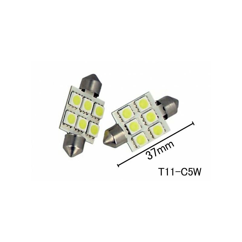 Coppia 2 Lampade Led T11 C5W Siluro 37mm Con 6 Smd 5050 Colore Bianco Freddo 6000K 12V 2W Attacco:T11 C5W Voltaggio: 12V Potenza: 2W Numero Led:6 SMD 5050 Colore:Bianco Freddo 6000K Misura:Lunghezza 37mm,Larghezza 16mm Confezione: 2 Pezzi
