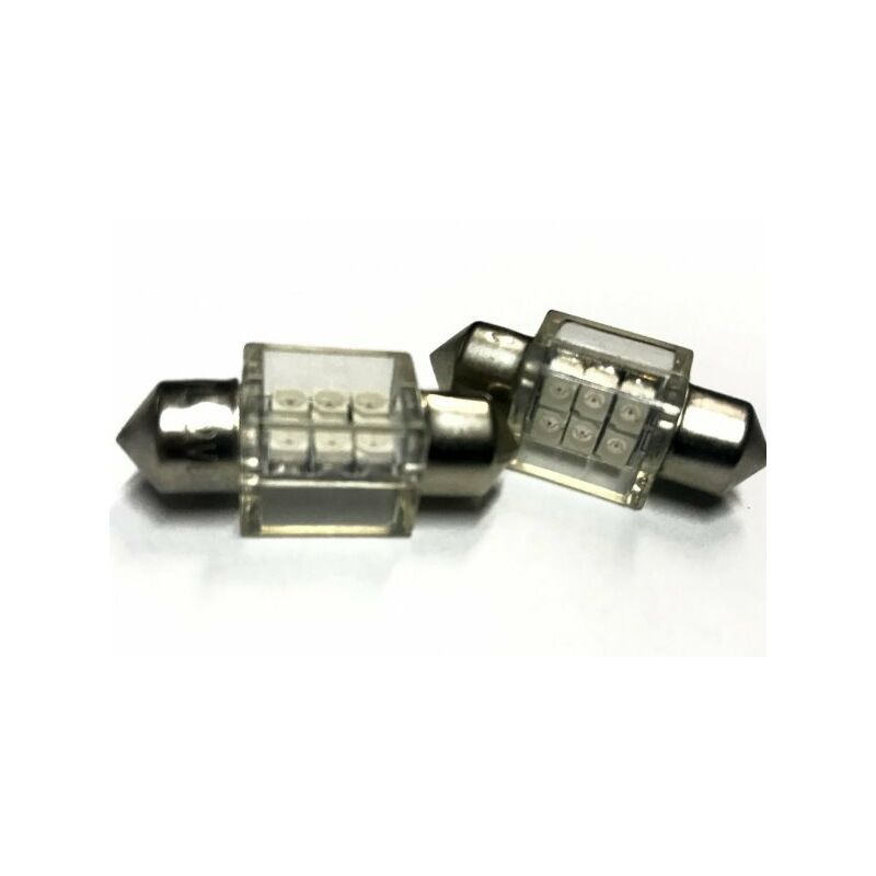 Coppia 2 Lampade Led T11 C5W Siluro 31mm Quadrato Con 6 Smd 3528 Colore Bianco Freddo 6000K 12V 1W Attacco:T11 C5W Voltaggio: 12V Potenza: 1W Numero Led:6 SMD 3528 Colore:Bianco Freddo 6000K Misura:Lunghezza 31mm,Larghezza 11mm,Spessore 11mm Confezione: 2 Pezzi
