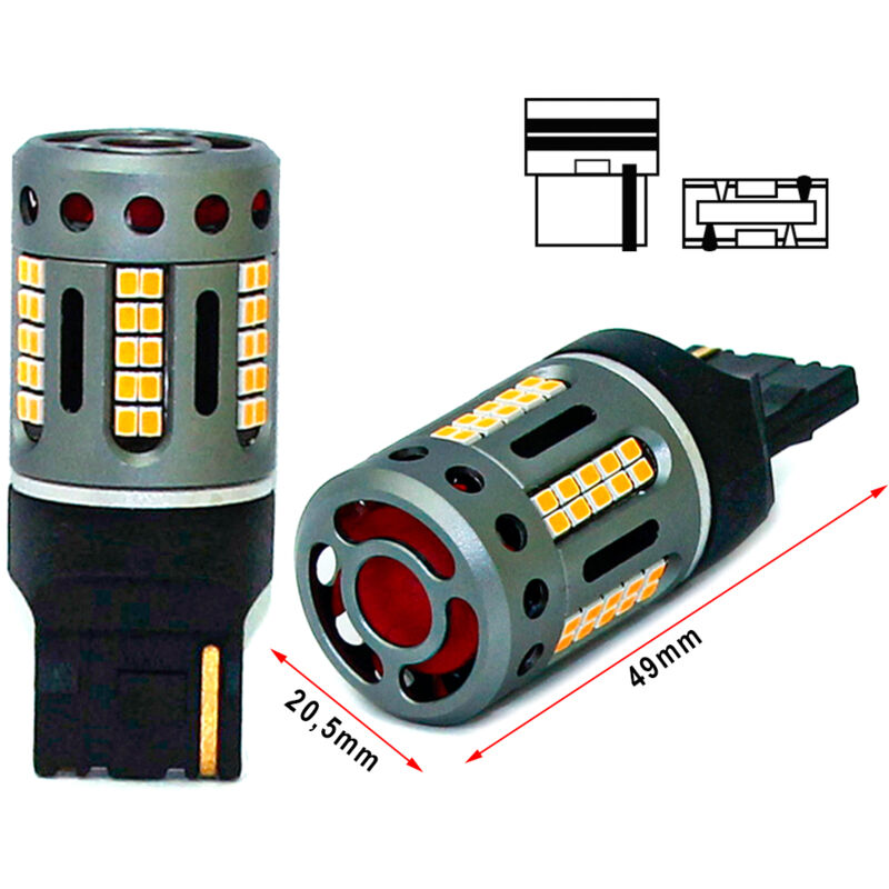 2 Pezzi di Lampade Led 100% Canbus No Errore 12V 21W Effettiva Con 60 Smd 2016 Da 1W. Attacco T20 7440 W21W Singolo Filamento,Colore Arancione,Super luminoso Circa 900 lumens Ogni Lampada. Con Ventola Di Raffredamento In Testa,Sensore Di Temperatura Integrata,Senza Polarità,Facile Da Installare. Diametro Solo 20mm,Lunghezza Totale Compreso Base 49mm,Illuminazione 360 Gradi. Ideale Per Sostituzione Luce Freccia Originale Con Lampada Led Senza Necessità Di Resistenza. Marca CARALL Serie Commerciale S9 Codice Prodotto LS43S9 Attacco 7740 T20 W21W Mono Filamento Voltaggio DC10V-18V Potenza Nominale 60W (60 SMD 2016 da 1W) Potenza Effettiva 21W (Assorbe 1,7A a DC12V ) Luminosità 900 Lumen Colore Arancione Polarità Senza Polarità Canbus SI, 100% Canbus Dimensione Diametro Solo 20mm,Lunghezza Totale Compreso Base 49mm Dissipatore Ventola In Testa Compatibile Tutte Auto Con Lampada T20 7440 Confezione 2 Lampade Nota Bene Questa Lampada Assorbi 21W Effettiva Come Lampada Alogena