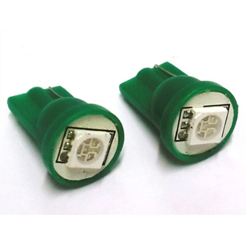 Lampada Led T10 W5W 1 Smd 5050 Verde 12V "1 Coppia" T10 W5W con 1 LED SMD 5050 - SENZA RESISTENZA - colorazione VERDE - INFORMAZIONI UTILI: - Voltaggio 12V - Attacco di tipo T10 W5W - Colore luce LED: VERDE - Numero di LED SMD per lampadina: 1 Smd 5050 - Potenza di consumo: 0,2 W - Dimensioni: Lunghezza totale: 17mm;