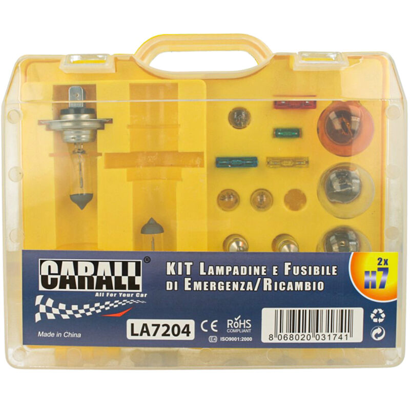 Kit Lampadine e fusibile di emergenza e ricambio in valigetta,kit contieni 2X H7 12V 55W,1X P21/5W 12V 21/5W,2X P21W 12V 21W,1X PY21W 12V 21W,2X R5W 12V 5W,1X T11 38mm 12V 10W,1X T11 36mm 12V 5W,2X T10 12V 5W,1X T4 12V4W,1X fusibile 10A,1X fusibile 15A,1X fusibile 20A e 1X fusibile 30A,totale 17 pezzi Kit Lampade di ricambio e emergenza 17pz 12V -2X H7 12V55W PX26d- - Marca CARALL - Descrizione: In vendita un kit da 17 pz di lampade di ricambio e emergenza 12V. Viaggiate Sicuri ed avete sempre in auto per il rispetto della normativa di legge. Nel Kit Contiene: 2X Lampada H7 12V 55W PX26d 1X Lampada P21/5W 12V 21/5W BAY15D 2X Lampada P21W 12V 21W BA15S 1X Lampada PY21W 12V 21W BAU15S 2X Lampada R5W 12V 5W BA15S 1X Lampada T11 38mm 12V 10W 1X Lampada T11 36mm 12V 5W 2X Lampada T10 12V 5W W2,1x9,5d 1X Lampada T4 12V4W BA9S 1X fusibile 10A 1X fusibile 15A 1X fusibile 20A 1X fusibile 30A