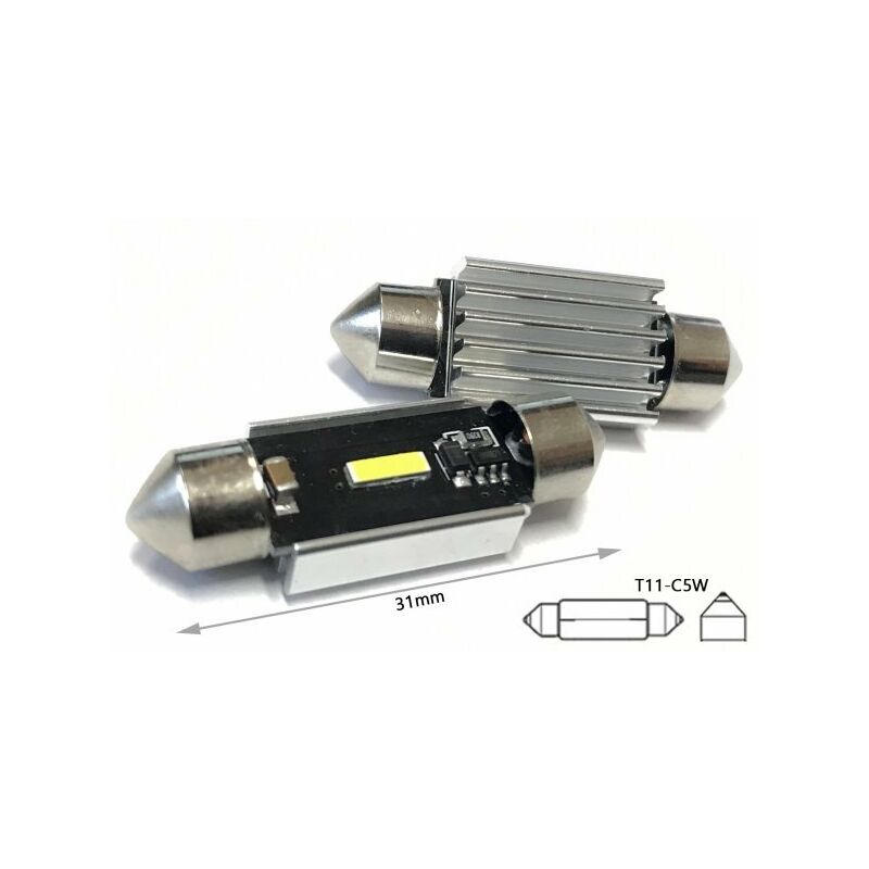 Lampada Led Siluro Canbus Pro 31mm 1 Smd 1860 Da 5W No Errore 12V No Polarita Super Luminoso "1 COPPIA" di SILURO T11 C5W 1 Led Smd 1860 da 5W - con RESISTENZA - NO ERRORE- - Canbus Pro DC12V,Supportabile Fino a DC16V- -31mm No Polarità- -Dissipatore Incluso- - Colorazione Circa 6000K (Bianco Ghiaccio)- INFORMAZIONI UTILI: - Voltaggio DC 12V (supportabile fino a DC16V) - Attacco di tipo: Siluro 31mm T11 C5W - Colore luce LED: Bianco Circa 6000K - Numero di LED SMD per lampadina: 1 Led smd 1860 da 5W - Potenza di consumo reale: 2,5W(Assorbe 0,2A a DC12V, con questo assorbimento,non implica nella maggior parte dei veicoli a segnalare errore) - Misura: Lunghezza 31mm, Larghezza 13mm, Spessore 6,5mm - Confezione da 2 lampadine AVVISIAMO CHE: una volta acquistate e montate, se la segnalazione di errore sul computer di bordo dovesse rimanere, vi invitiamo a provare gli altri modelli "NO ERROR" che abbiamo a disposizione. Purtroppo non siamo in possesso di una lista di compatibilità precisa.