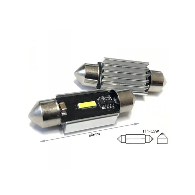 Lampada Led Siluro Canbus Pro 36mm 1 Smd 1860 Da 5W No Errore 12V No Polarita Super Luminoso "1 COPPIA" di SILURO T11 C5W 1 Led Smd 1860 da 5W - con RESISTENZA - NO ERRORE- - Canbus Pro DC12V,Supportabile Fino a DC16V- -36mm No Polarità- -Dissipatore Incluso- - Colorazione Circa 6000K (Bianco Ghiaccio)- INFORMAZIONI UTILI: - Voltaggio DC 12V (supportabile fino a DC16V) - Attacco di tipo: Siluro 36mm T11 C5W - Colore luce LED: Bianco Circa 6000K - Numero di LED SMD per lampadina: 1 Led smd 1860 da 5W - Potenza di consumo reale: 2,5W(Assorbe 0,2A a DC12V, con questo assorbimento,non implica nella maggior parte dei veicoli a segnalare errore) - Misura: Lunghezza 36mm, Larghezza 13mm, Spessore 6,5mm - Confezione da 2 lampadine AVVISIAMO CHE: una volta acquistate e montate, se la segnalazione di errore sul computer di bordo dovesse rimanere, vi invitiamo a provare gli altri modelli "NO ERROR" che abbiamo a disposizione. Purtroppo non siamo in possesso di una lista di compatibilità precisa.