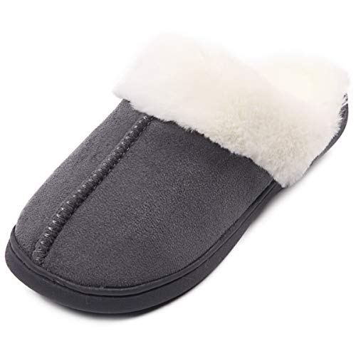 Caramella Bubble - Pantofole da donna in morbida pelle scamosciata, classiche in memory foam, antiscivolo, con colletto in pelliccia sintetica calda, Grigio (Grigio), 40/41 EU