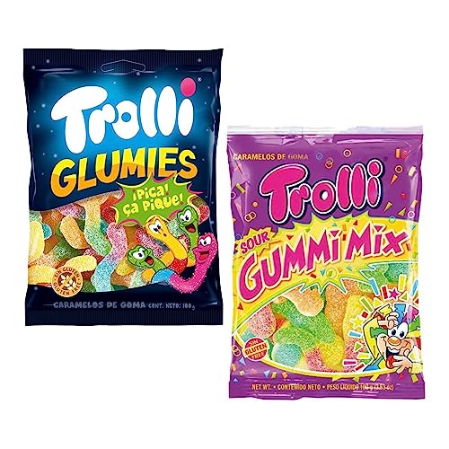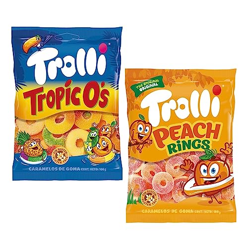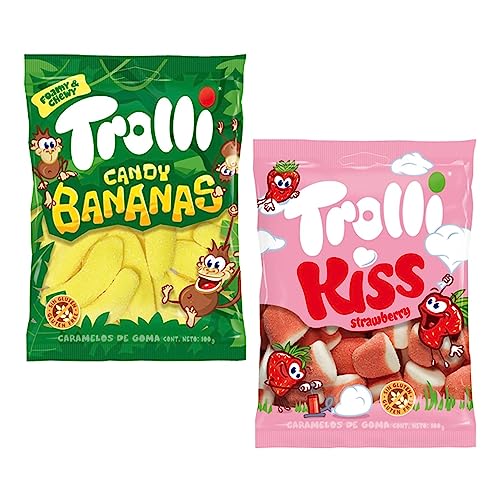 Caramelle Trolli Kit Misto Assortito 9pz x 100gr, Caramelle Frutta Per Bambini Compleanno Divertenti Squali, Orsetti gommosi, Fragola, Mela, Pesca, Vermi frizzanti, Pizza, Banane Assortito [900gr]