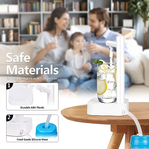 Materiale Sicuro: La nostra pompa per erogatore d'acqua è realizzata con tubi dell'acqua morbidi in silicone alimentare e plastica ABS, che garantiscono efficacemente che l'acqua potabile rimanga pu
