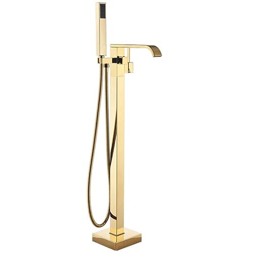 Rea CARAT GOLD RUBINETTO VASCA FREESTANDING Miscelatore Vasca con Doccetta in Ottone per Bagno Caldo e Freddo regolabile (Oro)