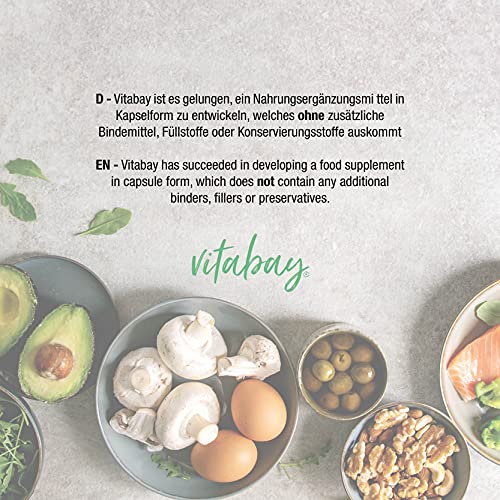 MADE IN GERMANY - Tutti i nostri prodotti sono realizzati in Germania e sono soggetti ai più severi controlli di produzione. Vitabay è sinonimo di prodotti innovativi e di alta qualità da oltre 10 anni. Stiamo ampliando la nostra gamma quasi settimanalmente e vogliamo offrire ai nostri clienti i migliori integratori alimentari al miglior prezzo.