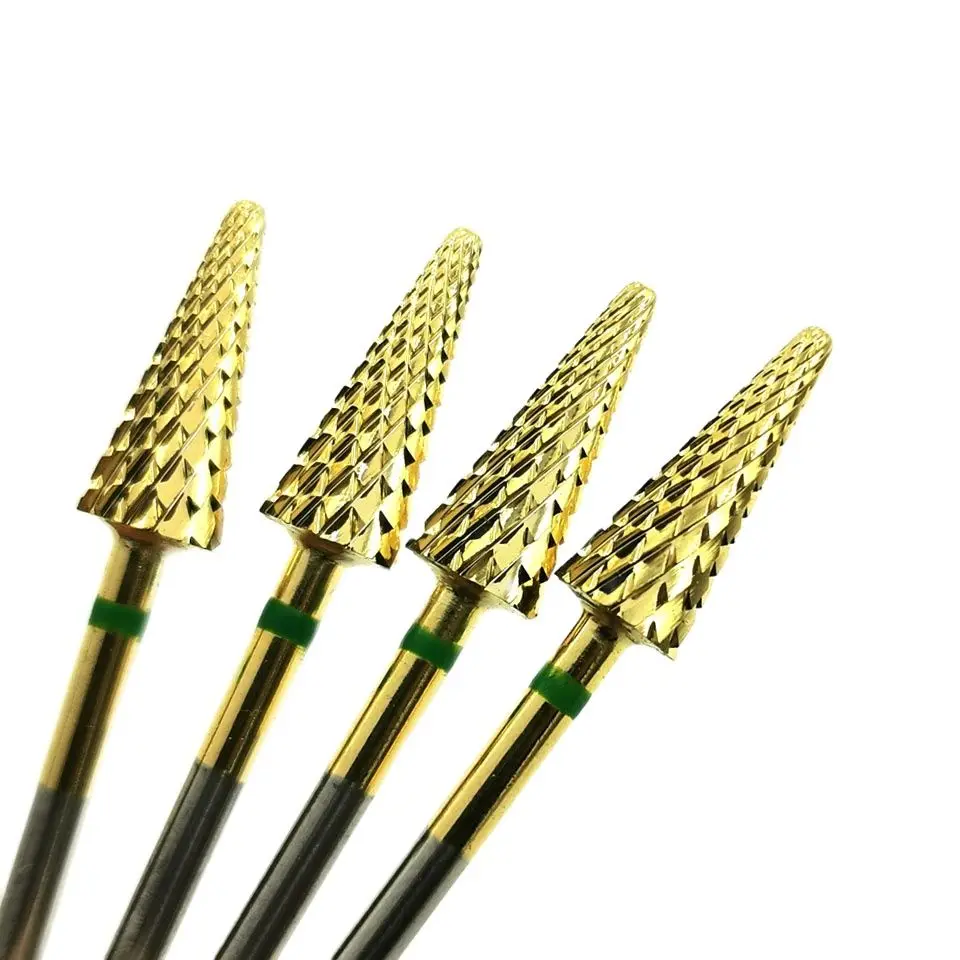 Gold Carbide Nail Drill Bit 3/32" Cone Milling Cutter For Manicure Rotary Tungsten Carbide Burr Drill Accessories Tool