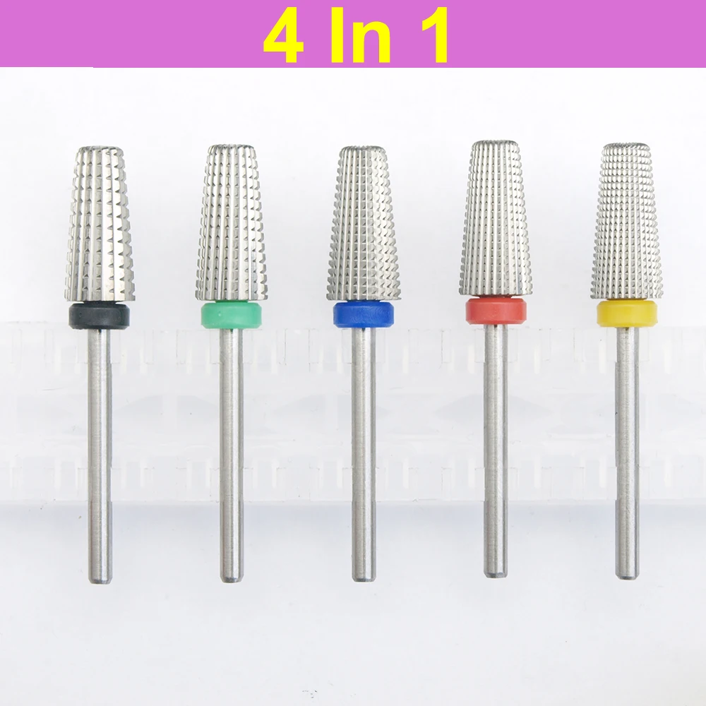 Carbide Tungsten 5 in 1 Nail Drill Bit Tapered Shape Straight Cut drill bit for Acrylic Nail Gel 3/32" Shank - Drill Machine