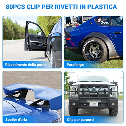 CarBole 80PCS Car Body Universal Push Fender Fermo di fermo Pin Rivetto Trim Fastner, Misura foro 7mm 8mm 9mm 10mm, compatibile con 52161-16010 52161-02020