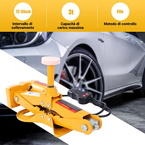 CarBole Cric Jack per Auto Elettrica 3T: Jack per Sollevamento a Forbice DC 12V Sollevamento Automatico Idraulico a Pavimento Jack Regolabile Altezza 12-42 cm per Veicoli, SUV