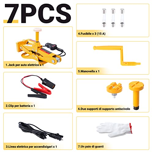 Kit completo: il kit di sollevamento elettrico a forbice include controller, manovella, fusibile, paio di guanti, ecc. L'attrezzatura compatta è immagazzinata in auto e utilizzata per sostituire e riparare pneumatici lungo la strada