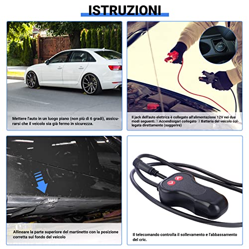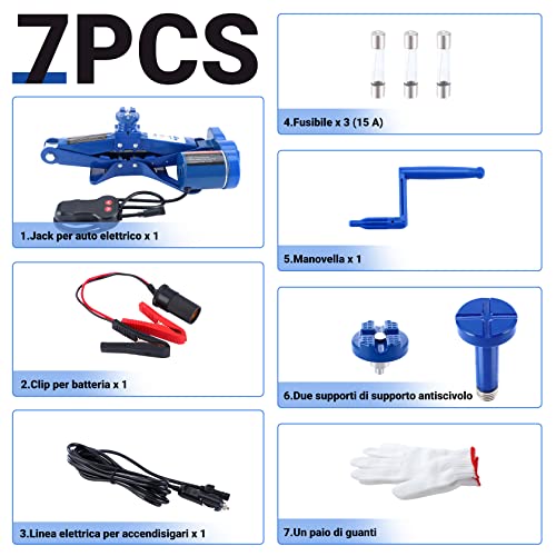 Kit Completo: Il kit di sollevamento elettrico a forbice include controller, manovella, fusibile, paio di guanti, ecc. L'attrezzatura compatta viene conservata in auto e utilizzata per sostituire e riparare pneumatici lungo la strada