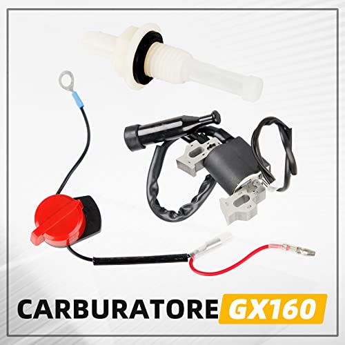 CarBole GX160 Carburatore con Autoavvolgente, Bobina di Accensione e Filtro Aria per Motore GX140 GX168 GX200 5HP 5.5HP 6.5HP