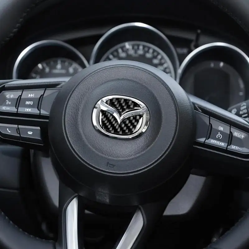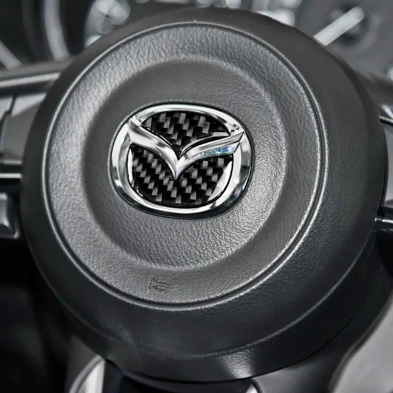 2pcs Carbon Fiber Car Steering Wheel Logo Stickers Decorative Styling Decals for Mazda Axela ATENZA CX-5 CX-4