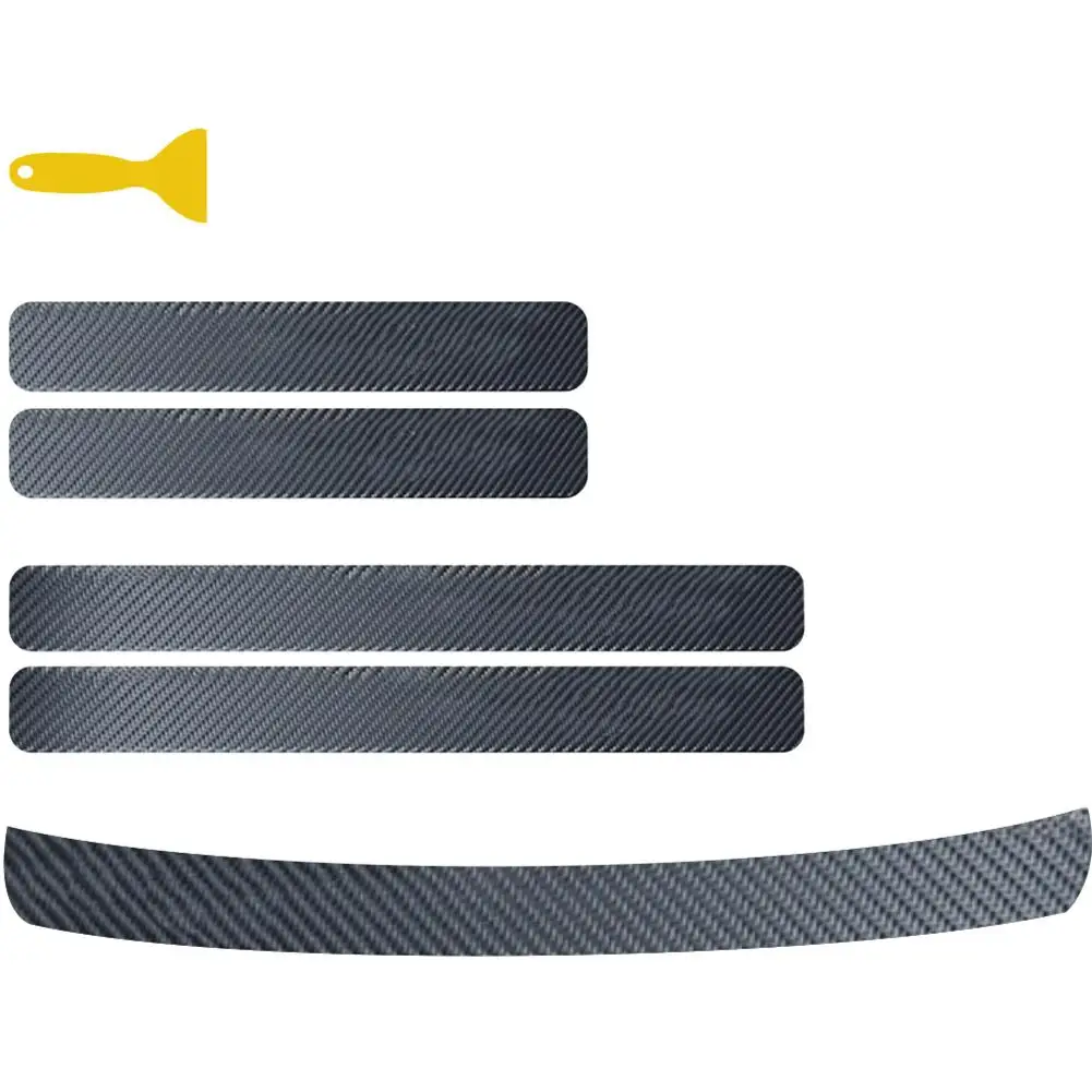 5pcs 3D Carbon Fiber Car Stickers Auto Door Sill+Rear Bumper Anti Scratch Decals Protect Your Car From Scratches Trace