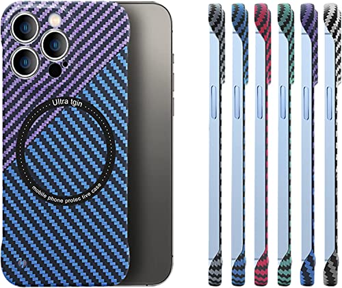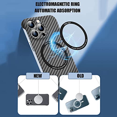 2022 New Carbon Fiber Texture Frameless Magnetic Phone Case for iPhone 11/12/13 PRO Max Shockproof Hard PC Cover (Black,for iPhone 12)