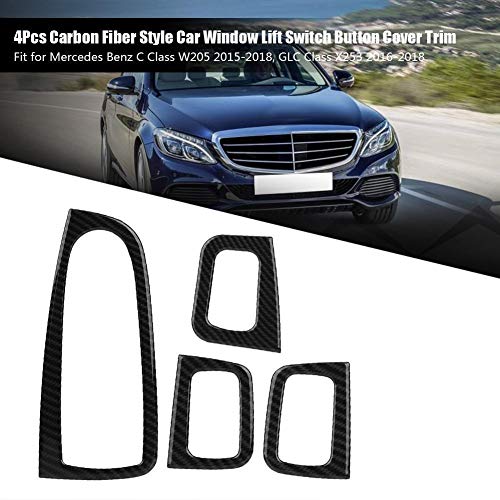 KSTE Carbonio Fibra, 4 Pezzi in Fibra di Carbonio della Finestra di Automobile Stile di Sollevamento Interruttore Coperchio Pulsante Trim Compatible with B-e-n-z Classe C W205