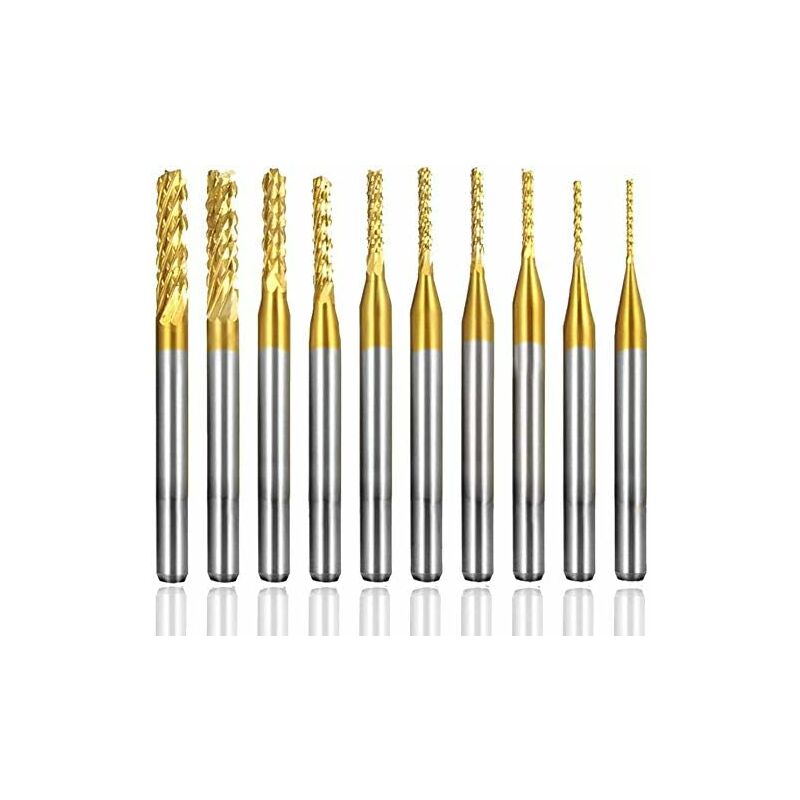 Colore come mostrato Dimensioni: 9,1 x 8,6 x 1,7 cm Peso: 60 grammi Realizzato in acciaio al carburo di tungsteno e titanio rivestito con buone prestazioni di fresatura e taglio che garantiscono un'elevata efficienza di lavoro Elevata durezza, elevata resistenza all'usura, alta resistenza. Avere sufficiente resistenza alla flessione e resistenza all'usura 10 diverse dimensioni per soddisfare le diverse esigenze, Diametro tagliente: 0,8-3,175 mm (0,8, 1,0, 1,2, 1,4, 1,6, 1,8, 2,0, 2,2, 2,4, 3,17 mm). Diametro asta: 3.175 mm. 12 mm, lunghezza totale: 37 mmGli spigoli vivi affilati possono essere utilizzati per fresare fori, scanalature e bordi su piastre e il processo sarà liscio, adatto per fresatura laterale, fresatura di estremità, lavorazione di finitura, ecc. Set di punte per incisione per frese in metallo duro, ideale per metallo tenero, circuito stampato, SMT, muffa, fibra plastica, fibra di carbonio, legno extra duro, circuito stampato, lavorazione di parti di precisione< /p>