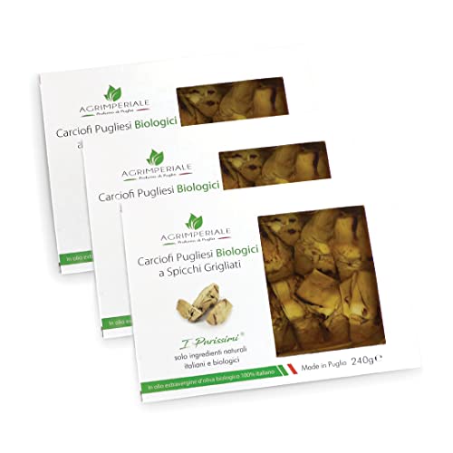 Carciofi Pugliesi Biologici a Spicchi Grigliati 3 pezzi 240 g in Olio Extravergine di Oliva - Linea "I Purissimi" Biologici, Naturali e Italiani