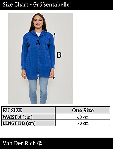 Van Der Rich ® - Cardigan Lungo con Cappuccio, Cardigan Aperto con Tasche (Taglia Unica L-XL) - Donna (Elettrico, TU)