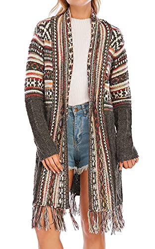 CGYY Cardigan da donna aperto davanti con nappe Boho lungo azteco maglione con stampa geometrica - verde - XL