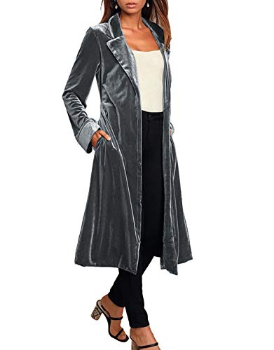 Cardigan lungo per le donne in velluto manica lunga anteriore aperto Casual Capispalla cappotto con tasca Grigio L