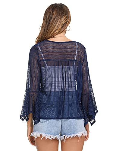 NC Cardigan Estivo Donna Corte Bolero Scollo a V Maglieria Filato Netto e Design dell'orlo Arruffato Eleganza Casual Trasparente Top con Maniche Lunghe Marina Militare XL